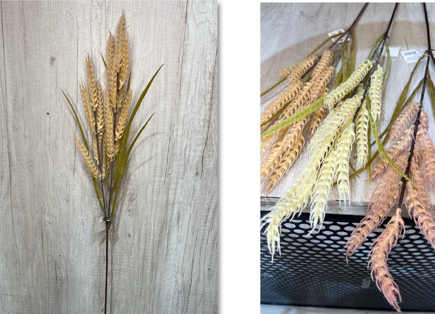 Galho Artificial de Trigo – Ref. 94012 Galho com espigas realistas e folhagem verde alongada, acabamento natural e haste