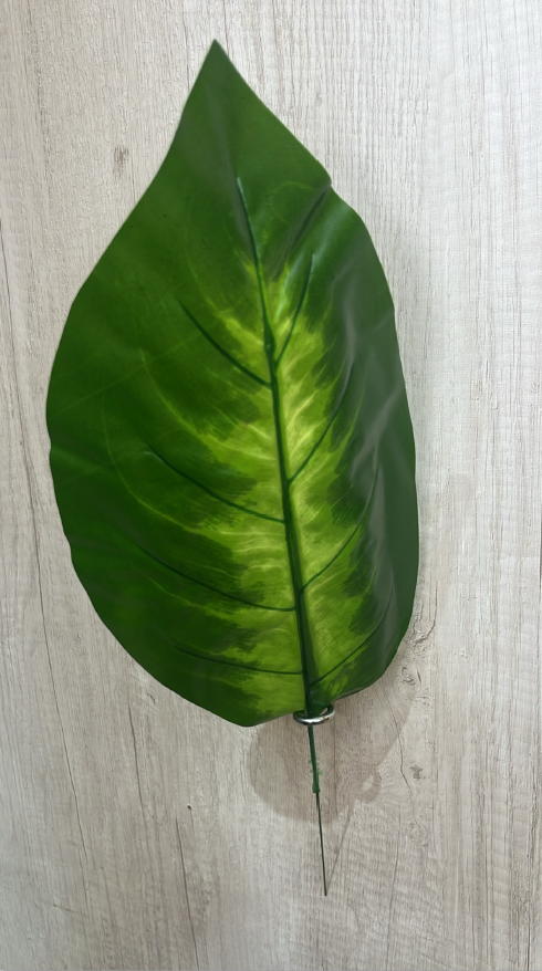 Folha Artificial de Antúrio Verde com Detalhes em Verde-Claro