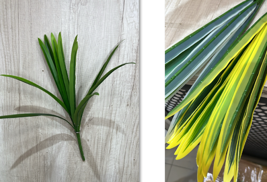 Folha Artificial de Coqueiro Verde com Detalhes Amarelos nas Pontas