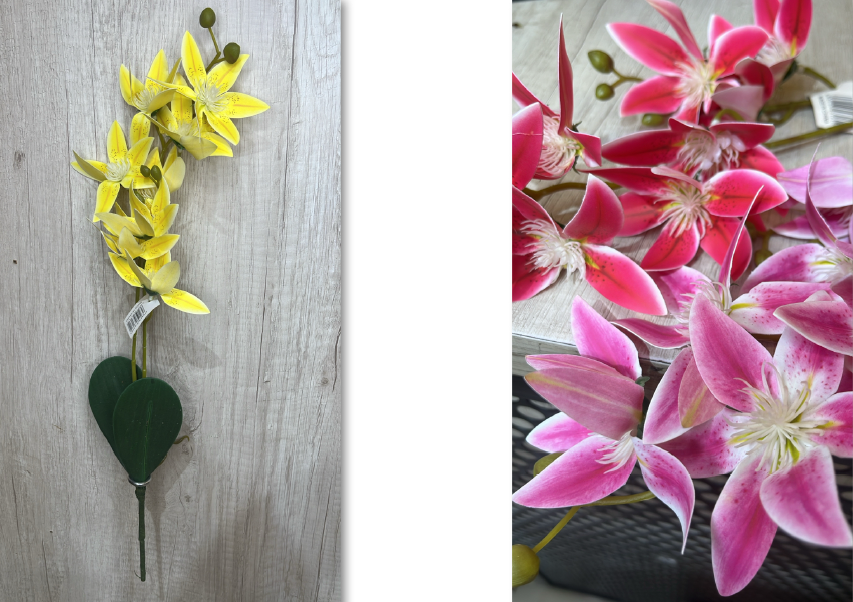Haste Artificial de Orquídea Estrela com Folhas e Botões Decorativos