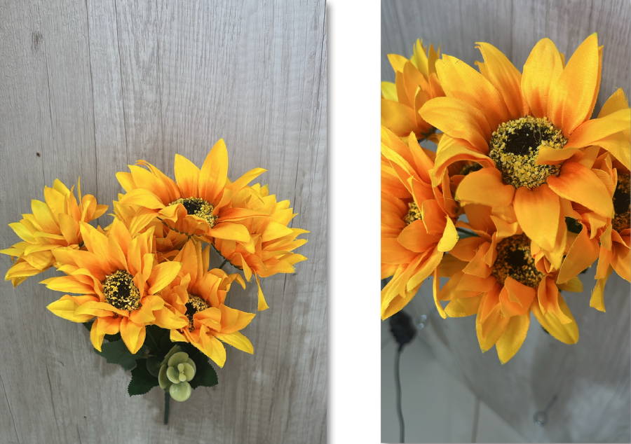 Buquê Artificial de Girassóis Amarelos com Folhagem Verde – Composto por Múltiplas Flores Vibrantes, Ideal para Arranjos
