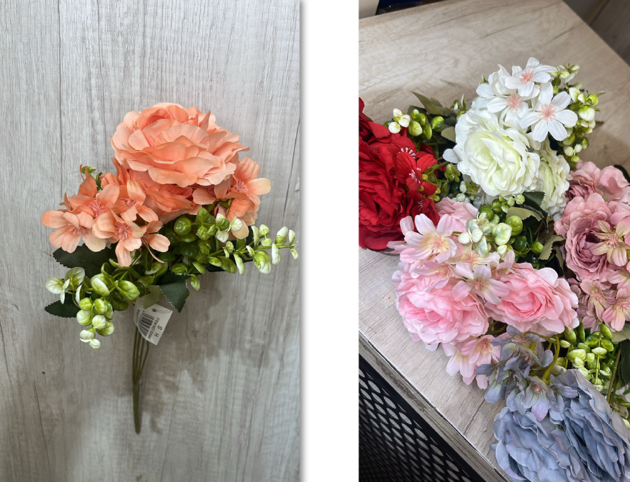 Buquê Artificial de Rosas e Dálias – Ref. 93069 Flores com pétalas delicadas e botões verdes, acabamento realista e folh