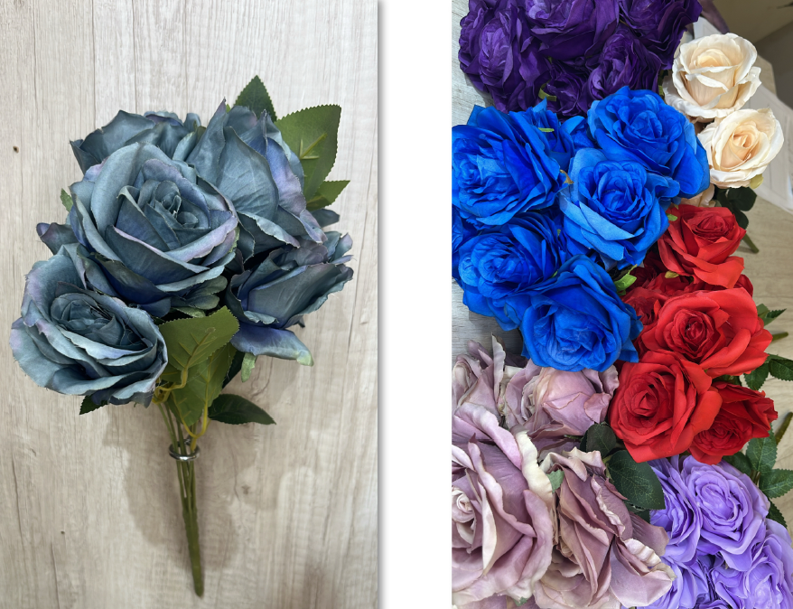 Buquê Artificial de Rosas – Ref. 93002 Flores com pétalas grandes e realistas, folhagem verde e caule reforçado. Cores: